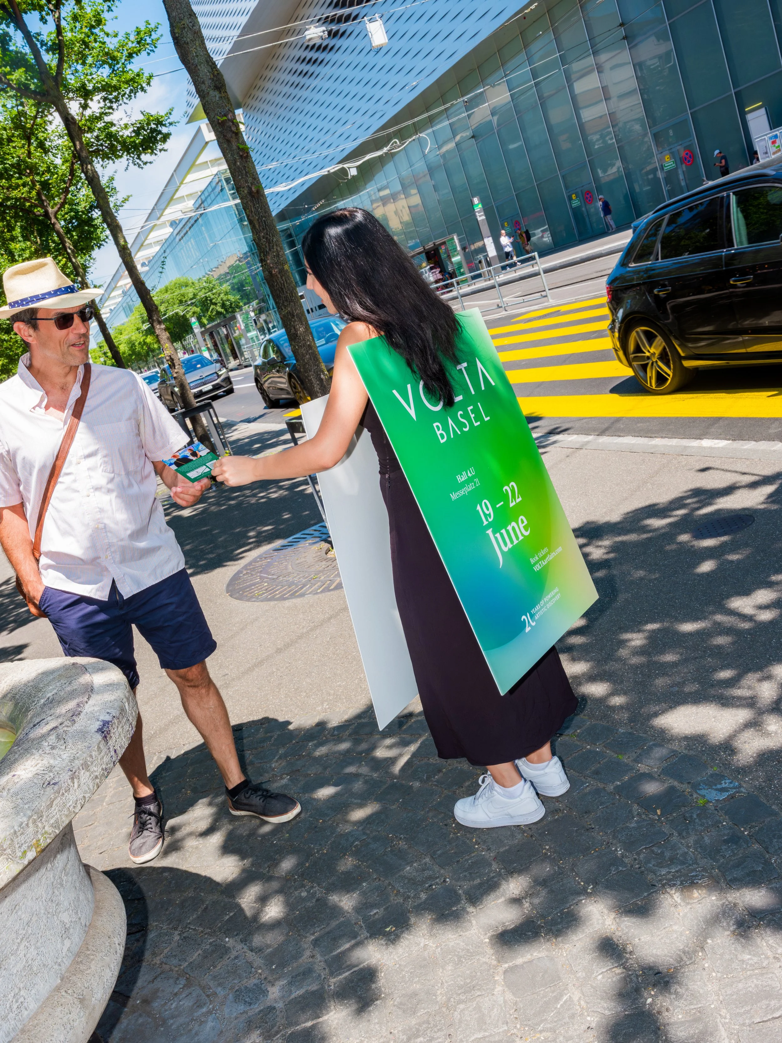 Promotion teams distribute flyers and give-aways directly to the target audience in public spaces. For events and cultural offerings with personal interaction.